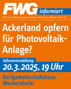 Veranstaltungen Einladung zur Infoveranstaltung am 20.03.25 on 25. Februar 202531. August 2025 Ackerland opfern für Photovoltaik-Anlage? previous post Haushalt 2025 next post Flächennutzungsplan 2040